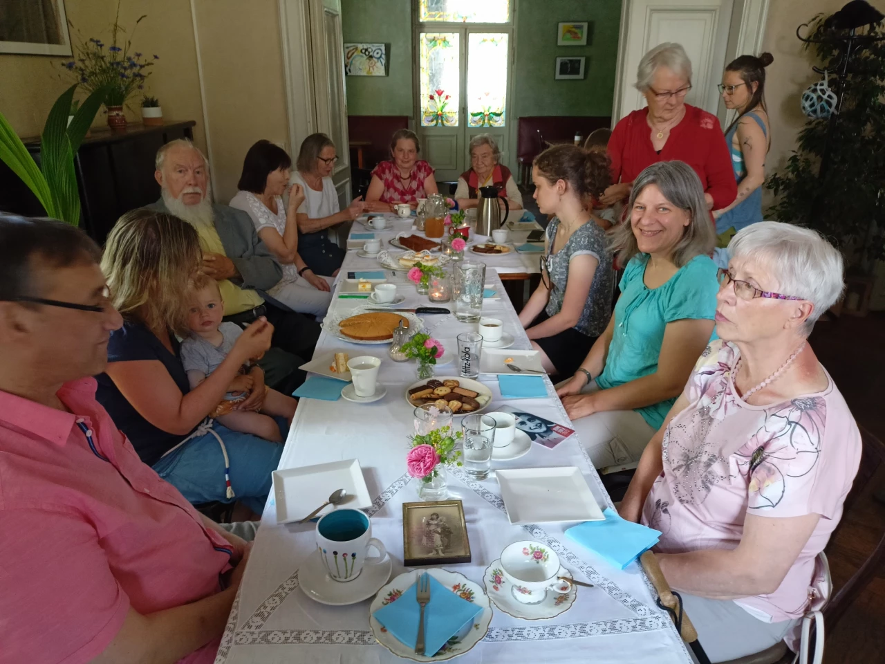 Am Sonntag, 12. Juni 2022, wäre Anne Frank 93 Jahre alt geworden. Aus diesem Anlass ist im Jolesch eine festliche Kaffeetafel gedeckt und es erklingt Tangomusik der 30er/40er Jahre. Eine bunt gemischte Tischgesellschaft hat sich eingefunden, um an Anne zu erinnern. Doch nicht nur um Anne Frank sollte es gehen, sondern auch um Bertha Hiller. Die ehemalige Hausherrin der Hillerschen Villa hätte ihren 153. Geburtstag im März gehabt. Eine geplante Veranstaltung dafür musste wegen Corona ausfallen.